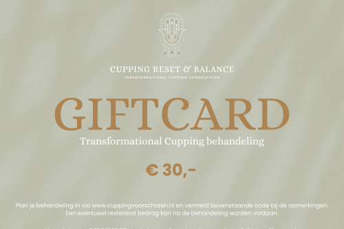 Met een giftcard van Cupping Reset & Balance geef je ontspanning, ruimte en herstel cadeau. Een origineel geschenk voor een verjaardag, feestdag of gewoon zomaar. Leuk om te geven, maar ook fijn om te krijgen.